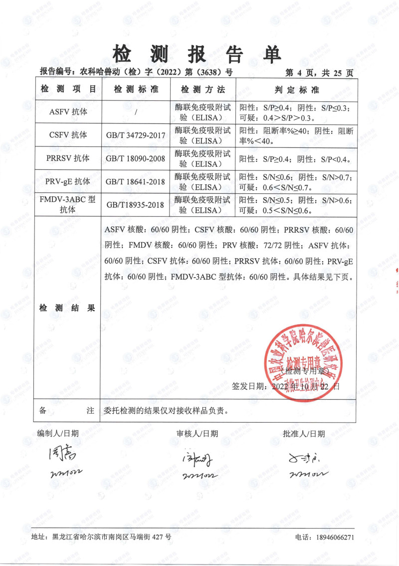 民望農(nóng)牧2022年10月份中國(guó)農(nóng)業(yè)科學(xué)院哈爾濱獸醫(yī)研究所檢測(cè)報(bào)告