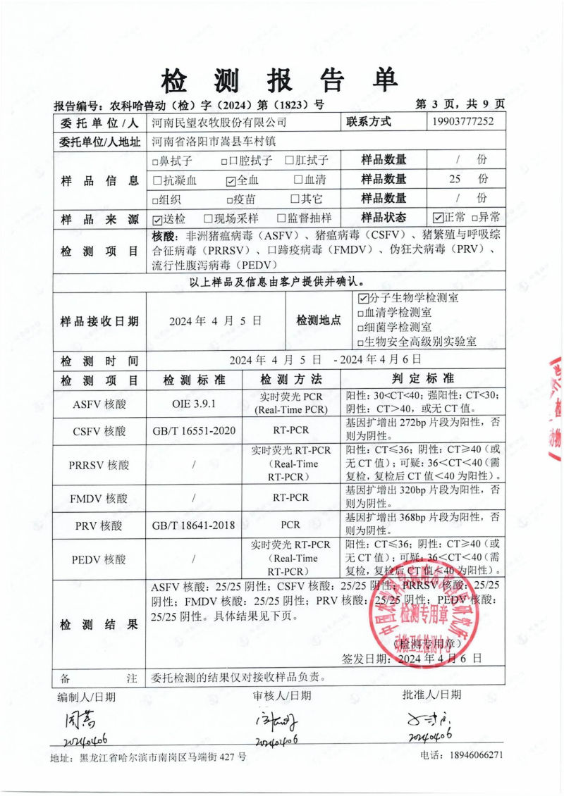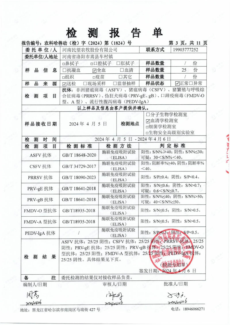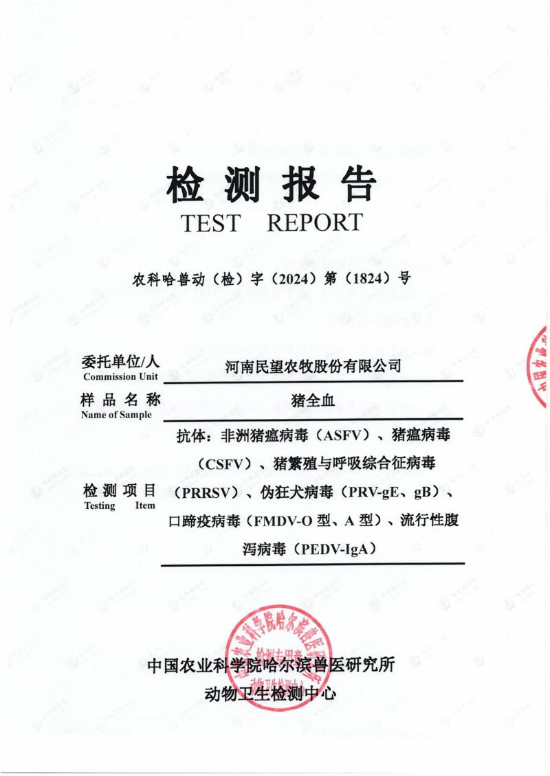 關注民望農牧公眾號,可持續(xù)查閱近期檢測結果,合作客戶可根據(jù)需求獲得相應檢測報告!