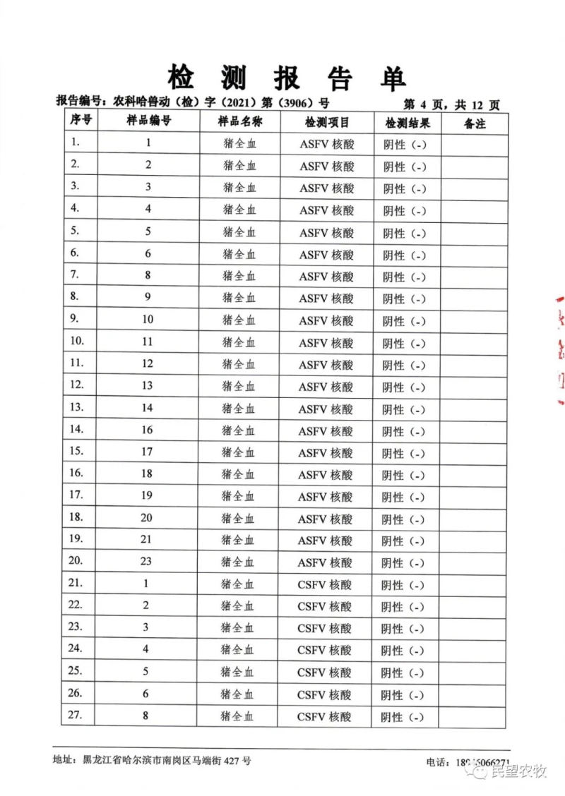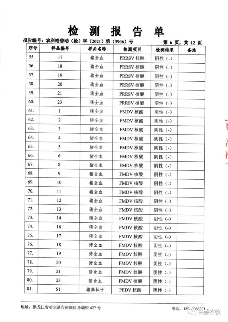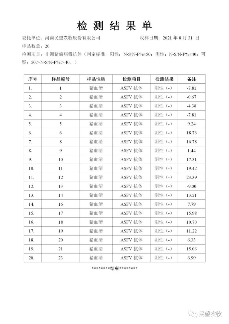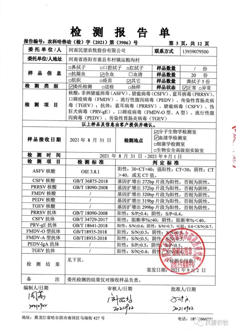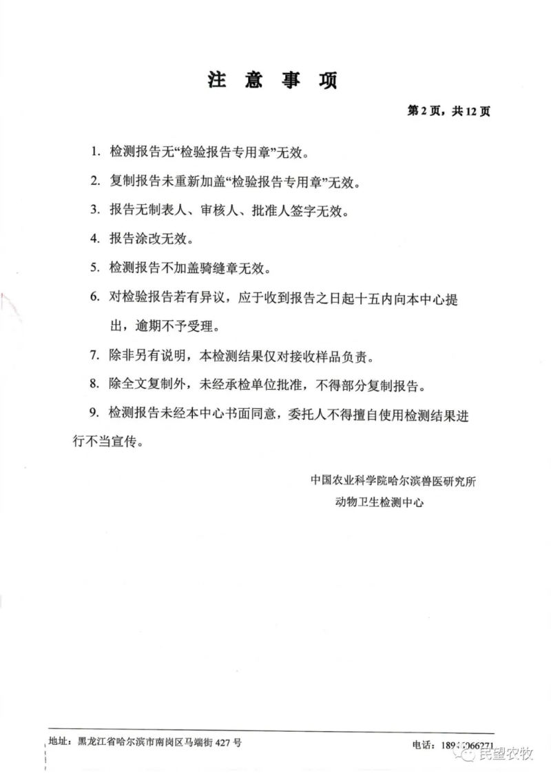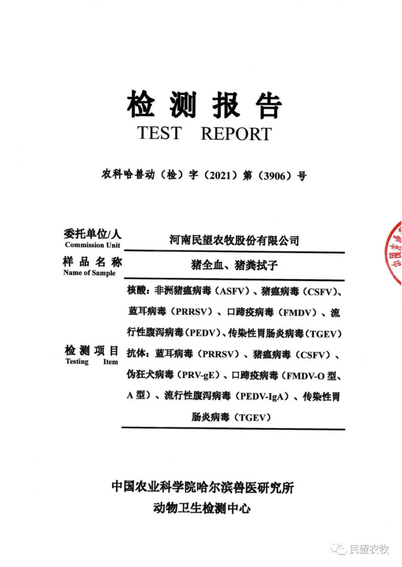 民望農(nóng)牧公眾號(hào)會(huì)持續(xù)發(fā)布檢測(cè)結(jié)果,合作客戶可根據(jù)需求獲得相應(yīng)檢測(cè)報(bào)告,敬請(qǐng)關(guān)注!